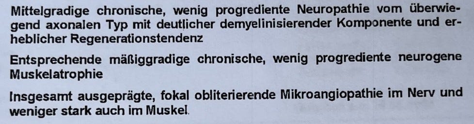 Ich erinnere nochmals an den bereits im Kapitel Endotheliitis veröffentlichten histologischen Befund, der jedenfalls auf eine Durchblutungsstörung hinweist (Stichwort obliterierende Mikroangiopathie):